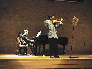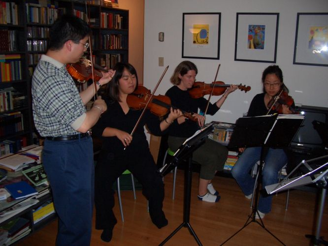 Jena rehearsing Vivaldi's 'Winter' Violin concerto from the 'Four Seasons' with string quartet playing the accompaniment for a short recital in the Minoru Chapel, Vancouver Canada 2004