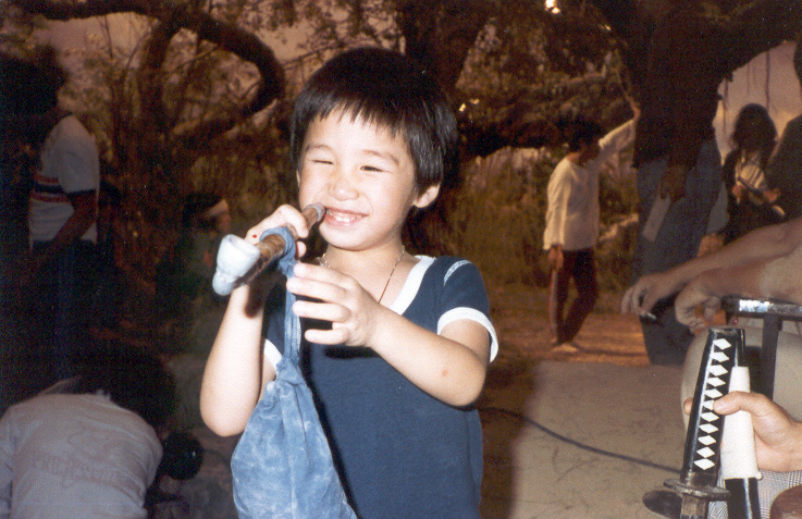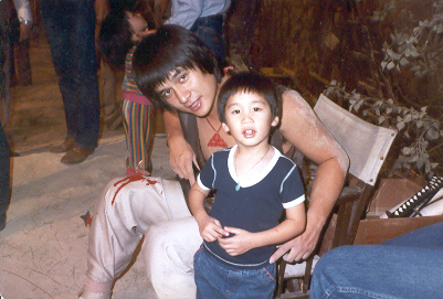 Me and Uncle Alex. These photos were taken at the movie studio. Myself, Mummy, Uncle Horatio (Uncle No.3) and Uncle David (Uncle No.10) went to watch him filming. Uncle Alex was a lot of fun, always joking around. Here he showed me how to smoke, I was trying to copy him smoking using the prop smoking pipe. Swords were being used in the fight scene, and in one photo I had just cut his knee when play acting with him (not literally) and he was goofing around pretending it was all painful and that he was hurt really bad. He was a lot of fun to be around, and I think some of his comedy movies show his true personality.In the last photo I'm sitting on the set with Uncle Horatio