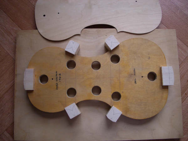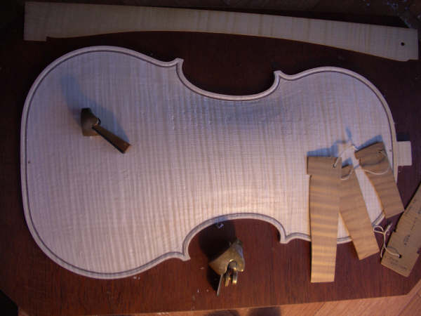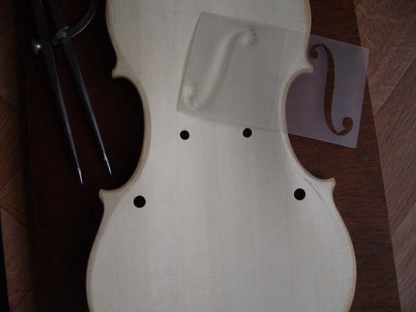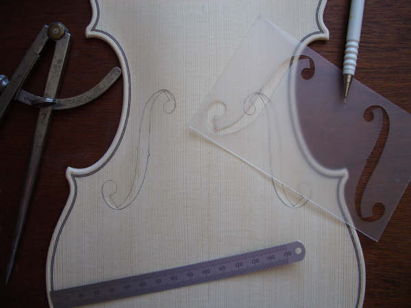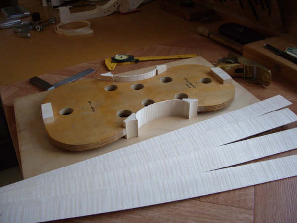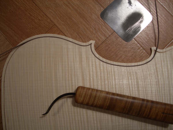 The front outline is taken and then arched and purfled like the back, although different thicknesses are needed here.
