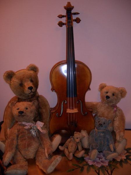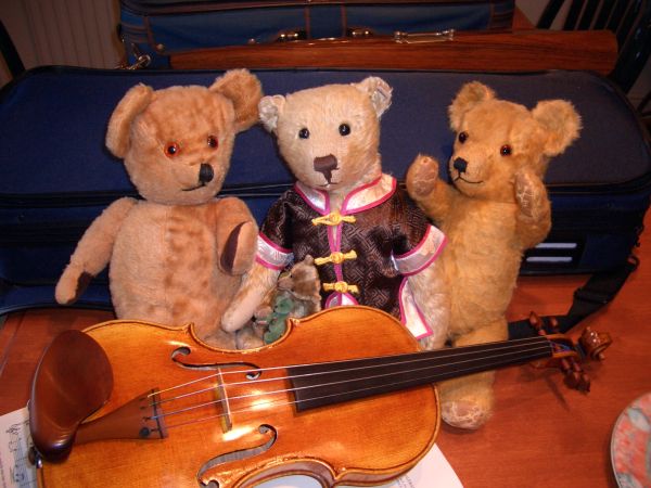 Here are some photos from the day I went to Holly Bush Cottage, Newark, to try my violin and meet Glen for the first time. Inevitably, Timmy bear came along too and made two new friends with 2 of Glen's teddies!