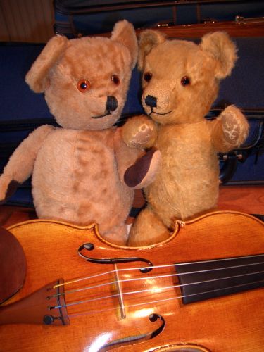 Two of Glen's sweet Chad Valley bears and my violin! These bears get everywhere!!!
