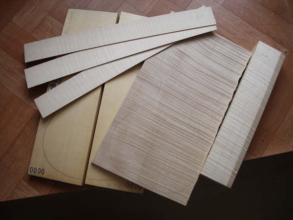 Glen starts with choosing a set of wood for tonal qualities and matches the Maple of the back, scroll and ribs: